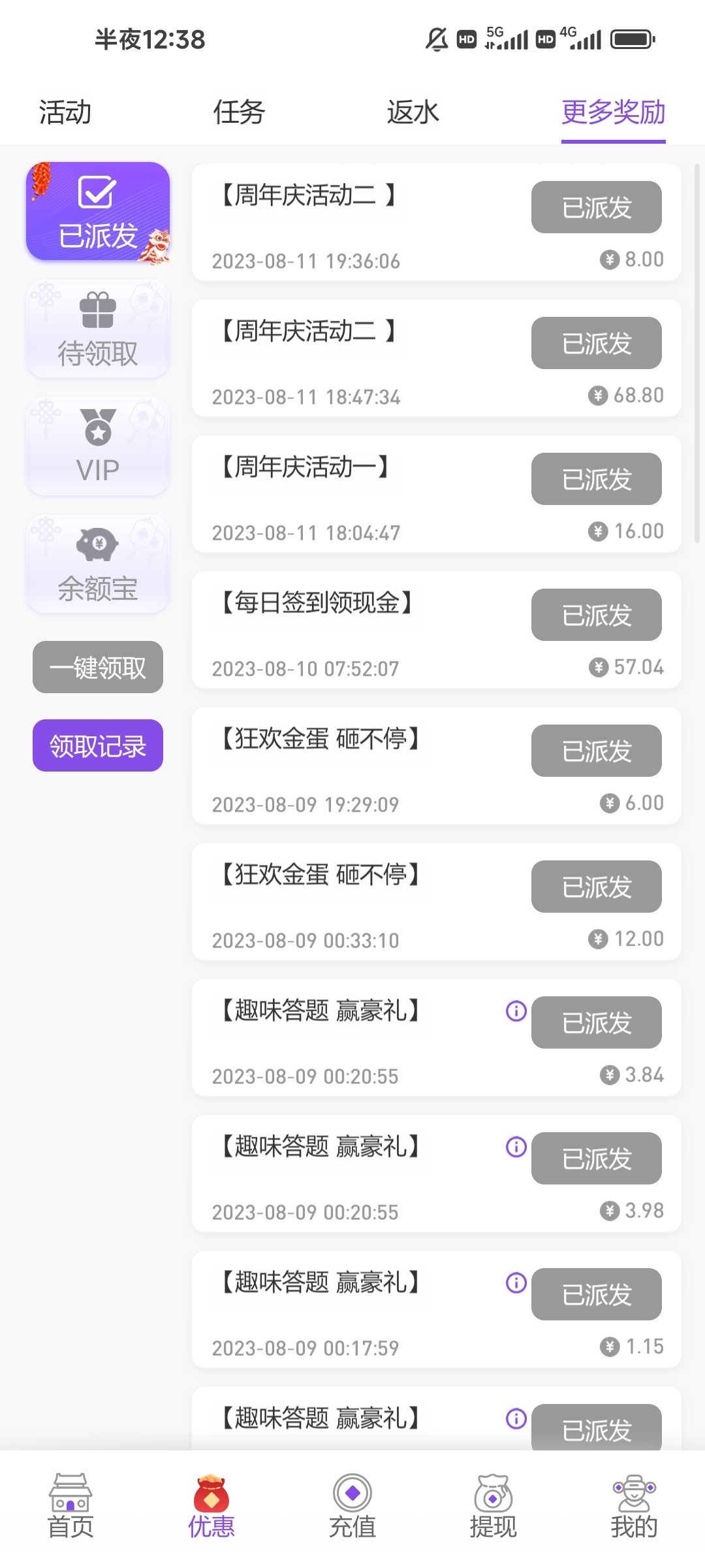昨天提现860。送了68彩金。后面又提现100。充值提现都有赠送。小额可以玩下。地址https://898609.vip/?id=33357567这是我的链接