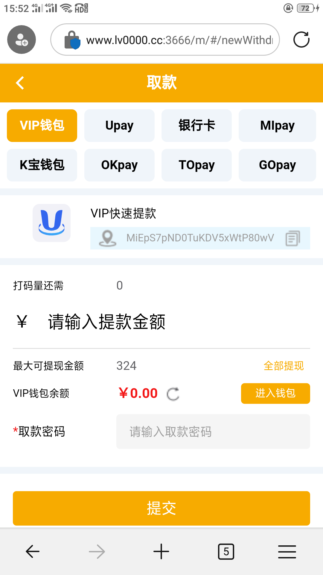 银河7180,有史以来遇到的最恶心的黑网,充300进去 没申请任何优惠 赢了700 出款1000 刚开始说不支持钱能钱包出款,后面问客服改成vip钱包取款,再次提交还是不出款,继续问客服 说我账号活跃度不够,你妈 我才注册开户2天 又没有申请你任何彩金,找的借口简直太侮辱智商了 最后实在没办法了,故意输到100了 去提交出款还是不给出