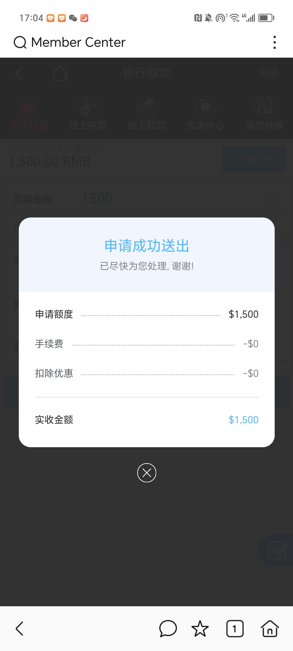 下1500秒到账