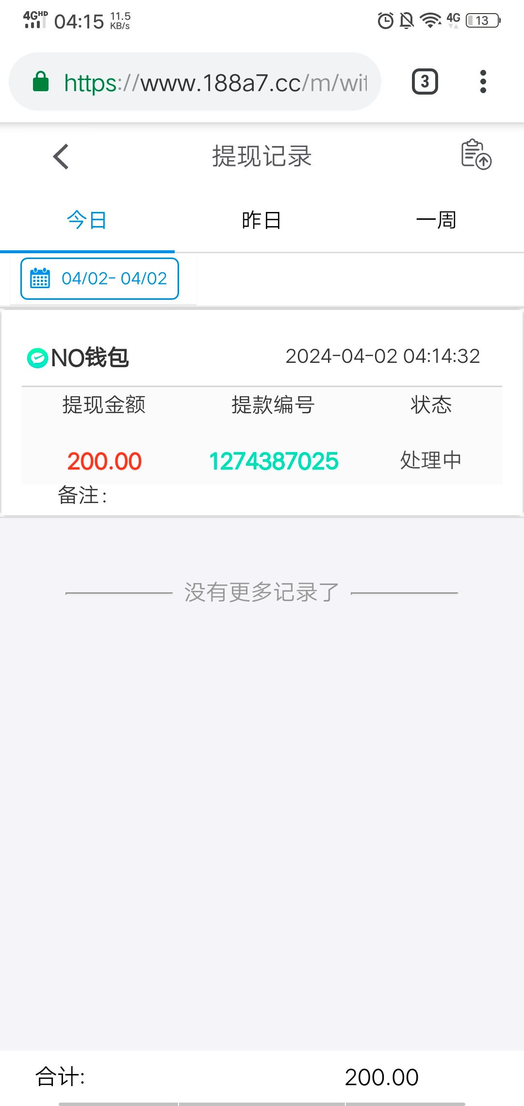 提款200不到账