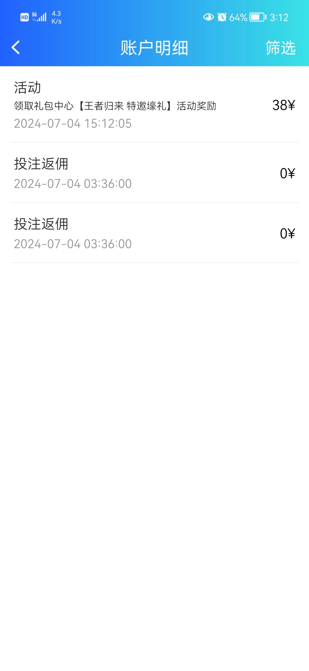 老用户直接登录账号,礼包中心自行领取彩金