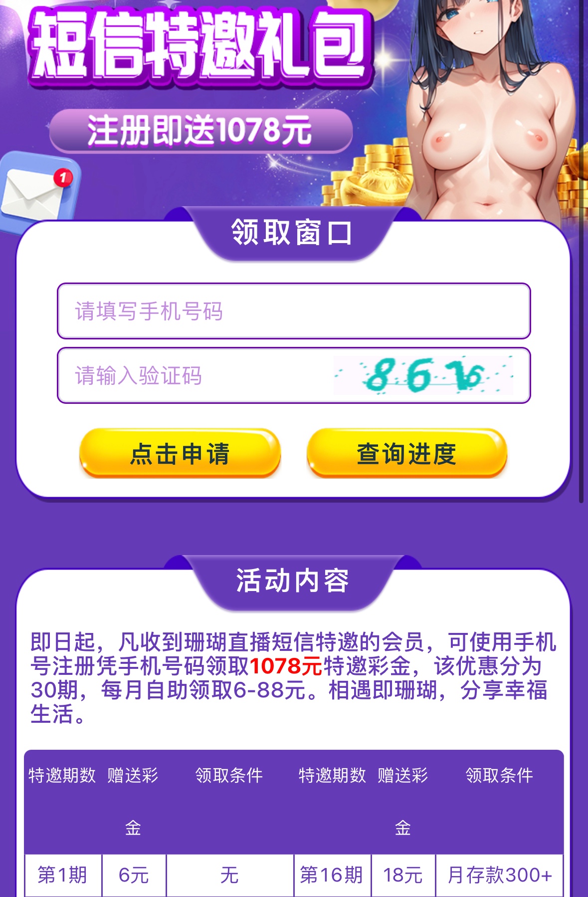 碰瓷短信特邀彩金,注册绑卡自助申请