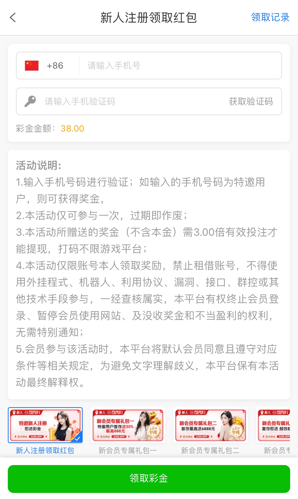 注册完善资料优惠里自助领取彩金,三倍流水,没有游戏限制