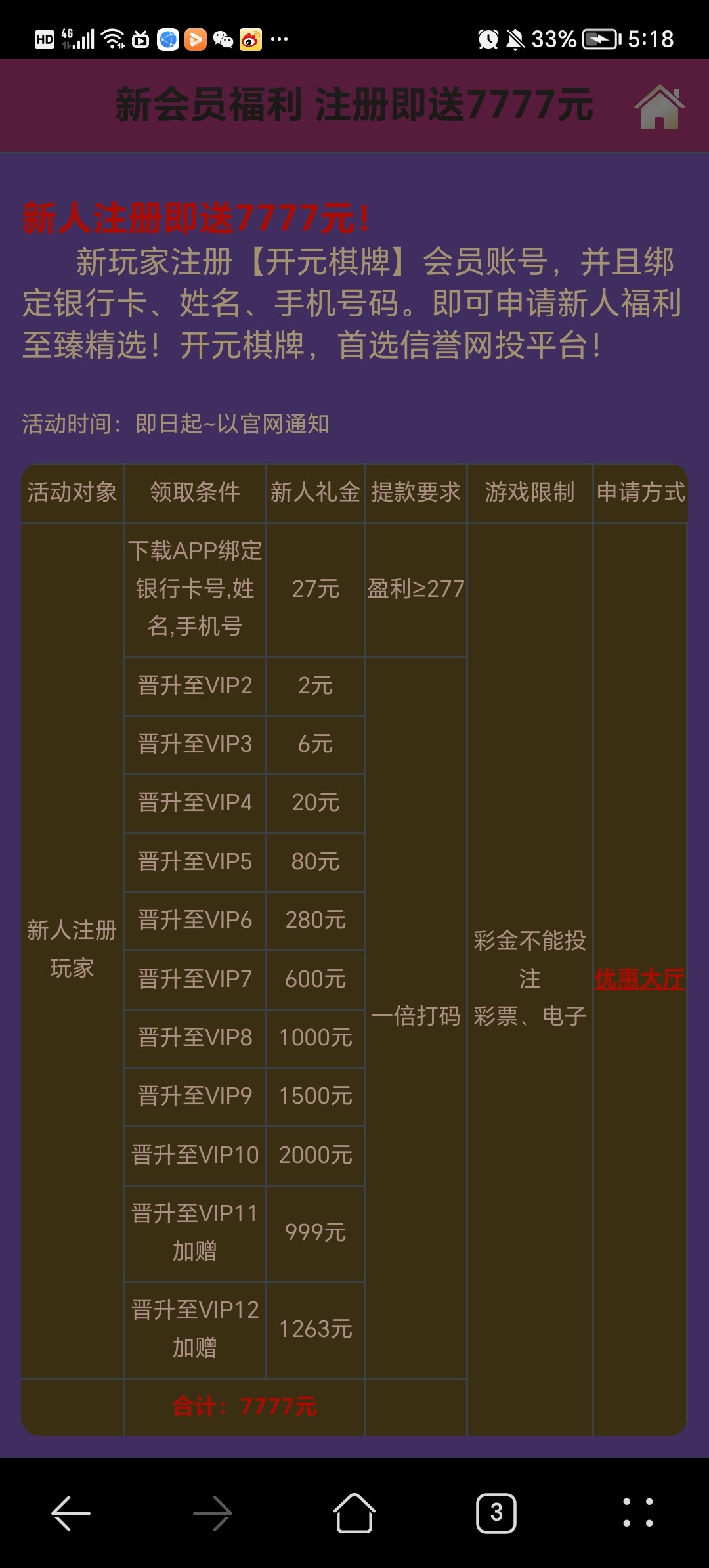 垃圾台赶紧删了吧,27彩金申请几天还审核,最后直接封号。撒比野鸡