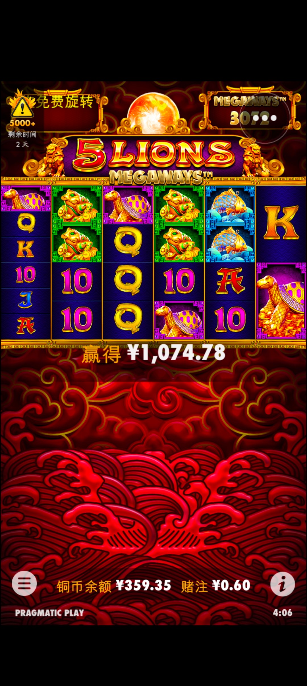 本来要死了,麻1转了300,然后去赏金船长,5倍,交了6个船长300之后就一直打流水