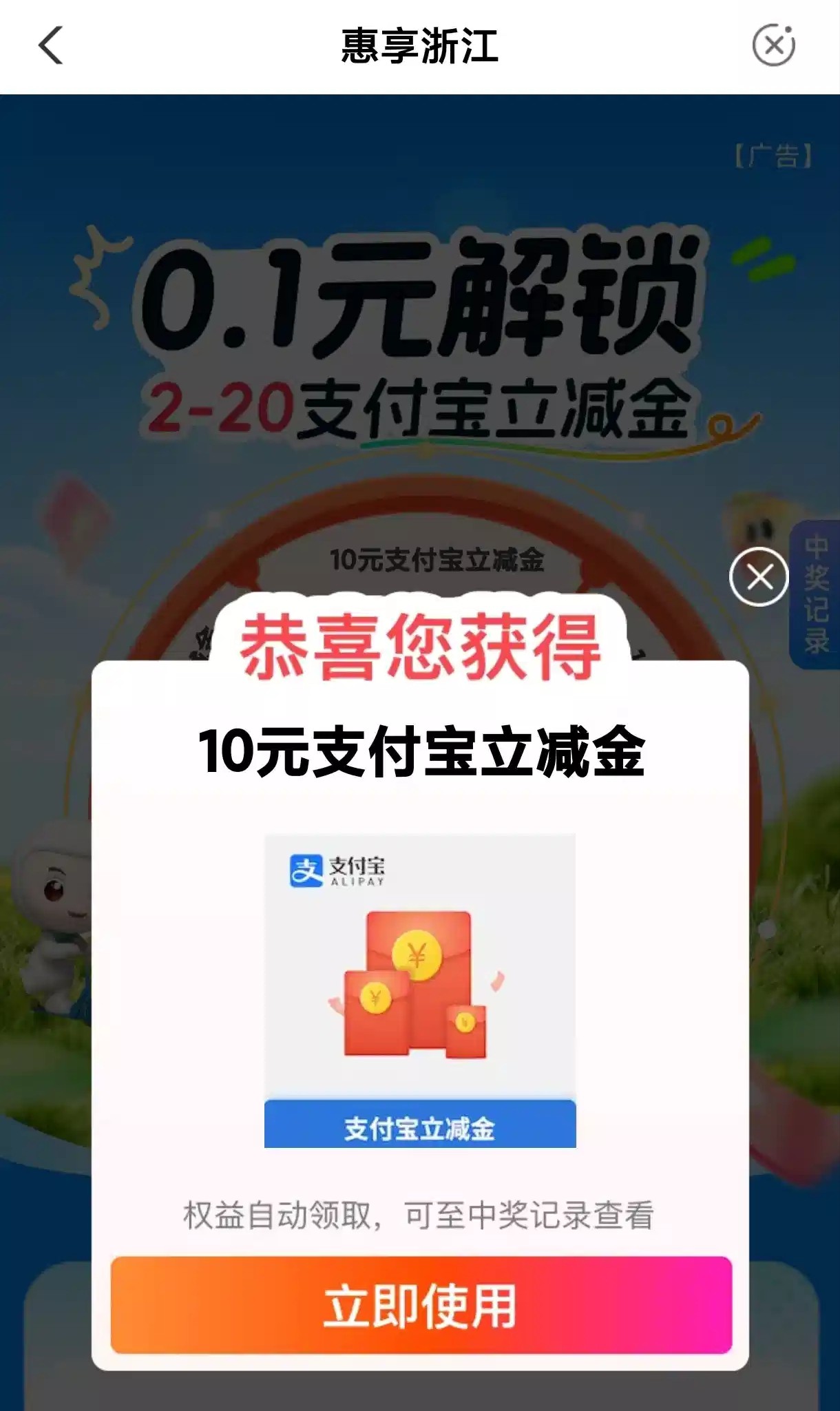 有农业银行的兄弟去试试有没有资格参加,支付宝立减金2-20元前提需要支付0.1参与