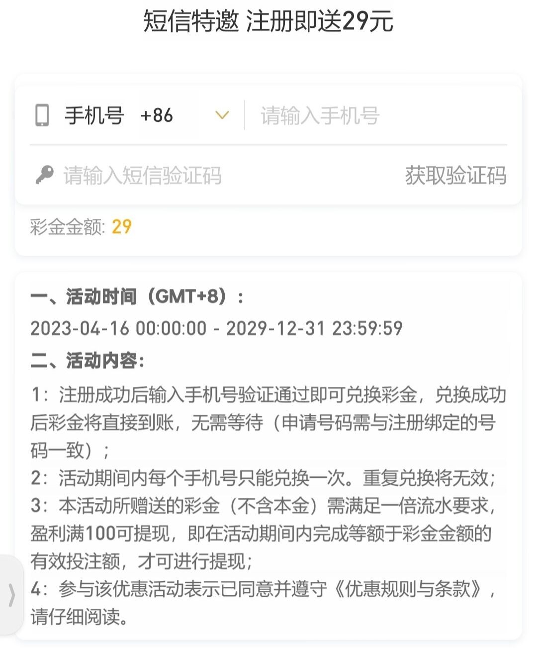 特邀碰瓷,注册活动里秒领29。不是特邀的话完善资料,等一个小时左右送29,最低100提现