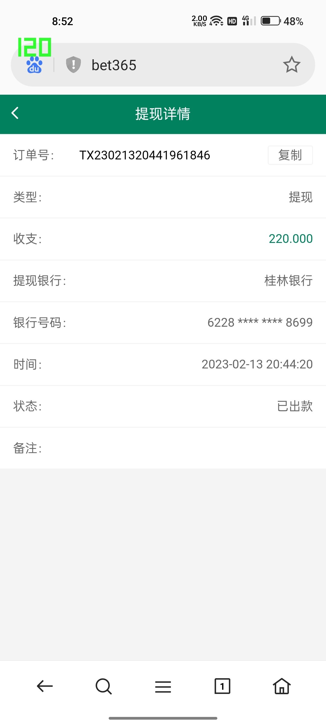 良心啊这个bet。40打麻将1输到还有9块玩开元牛牛连赢3把变66回去玩麻将1,一直大水赢到了1200。怕不能提就输了200出去提现1000。没15分钟就到账。